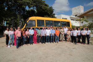 “Durante esses dois anos realizamos diversas ações para os profissionais da educação como a entrega de Tablets e notebooks para alunos e professores, Internet de graça na casa dos professores, merenda de qualidade, kits escolares, fardamento, pagamento do piso, e agora mais um ônibus para reforçar o transporte escolar, com acessibilidade,” destacou Sandrinho.