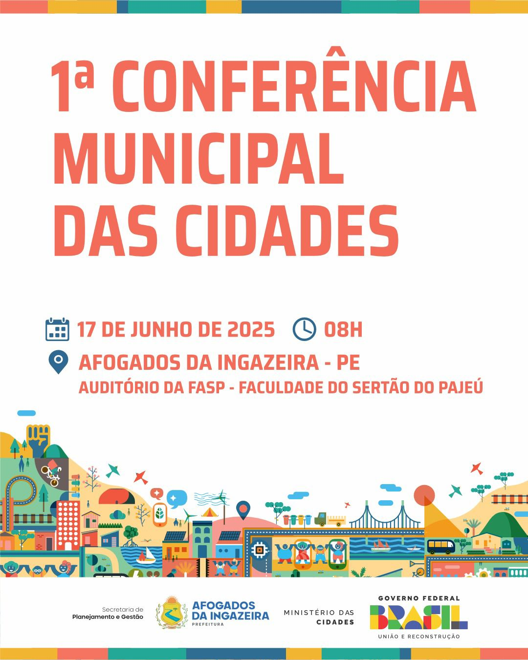 A Prefeitura de Afogados da Ingazeira, por meio da Secretaria de Planejamento e Gestão, convida toda a população para participar da 1ª Conferência Municipal das Cidades, um marco fundamental no fortalecimento das políticas públicas voltadas ao desenvolvimento urbano e sustentável do município.