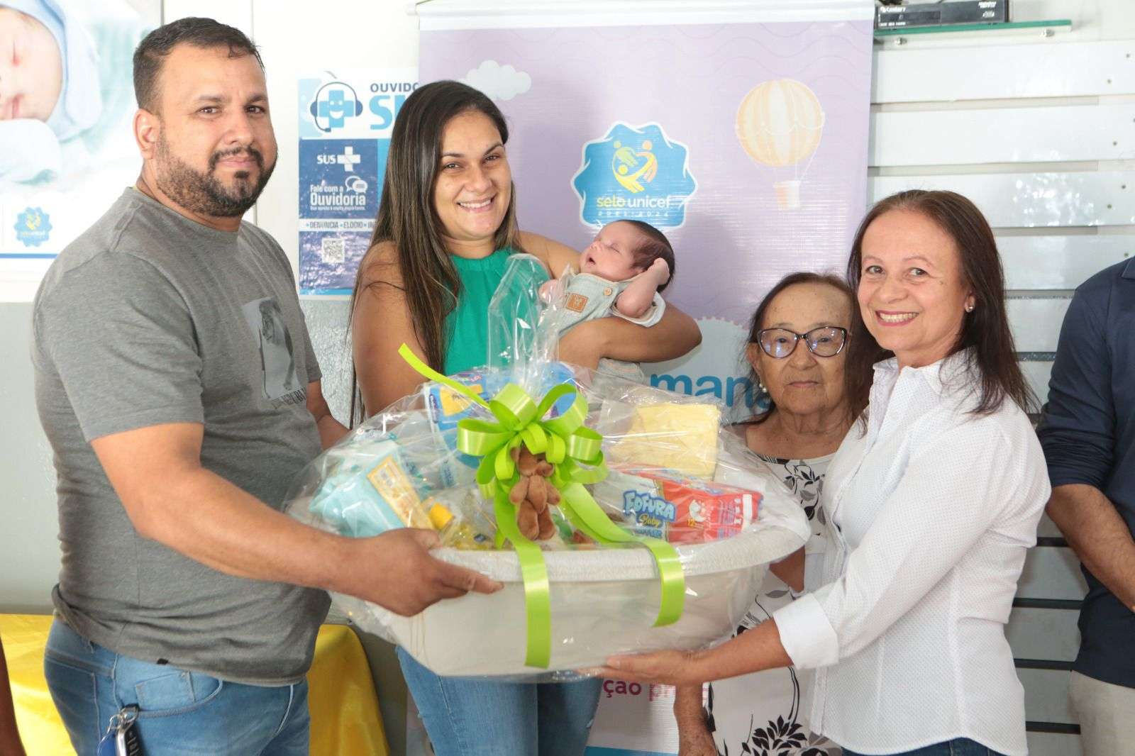 O Bebê Prefeito recebeu também um Kit Enxoval, um banner com a sua primeira fotografia e foram disponibilizados os serviços no Centro de Saúde da Mulher dos exames de triagem neonatal, teste do pezinho, orelhinha, linguinha e olhinho.