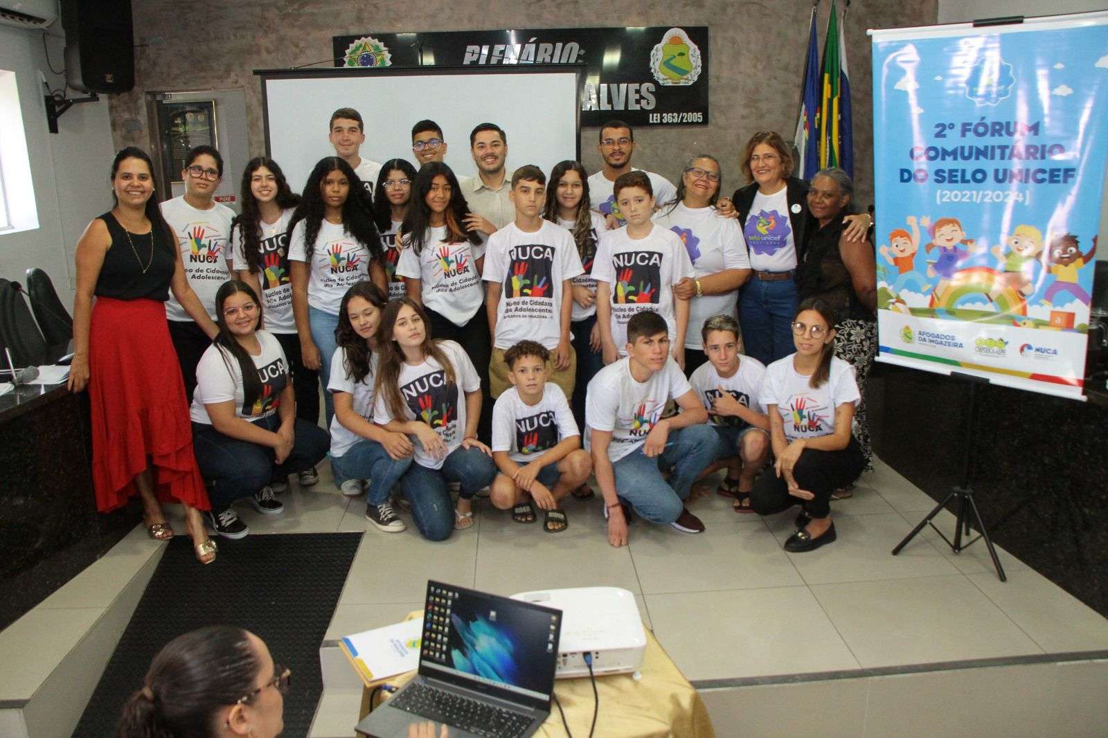 Presentes ao 2° Fórum Comunitário do Selo Unicef, realizado no auditório da câmara de vereadores de Afogados, estiveram Wiviane Fonseca, Secretária de Educação; Arlindo Júnior, Secretário Executivo de Assistência Social; Augusto Martins, Secretário de Cultura e Esportes; o executivo de cultura, Luciano Pires; além do vereador César Tenório, da Promotora de Justiça do Ministério Público de Pernambuco, Daliana Monique; da Presidente do Conselho de promoção e defesa dos direitos da Criança e do Adolescente de Afogados da Ingazeira, Amara Araújo; do vice-presidente da OAB (seccional Afogados), Airton Tavares; da representante do Conselho Tutelar, Patrícia Carvalho; do articulador do Prêmio Prefeito Amigo da Criança e diretor do CER III, Verandilson Zuza; e do coordenador do NUCA, Alisson Nascimento.
